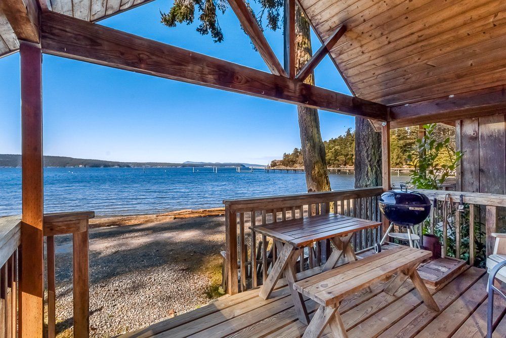 The covered beachfront patio includes a table, chairs, charcoal BBQ and utensils, and amazing westerly views and wildlife viewing! Step off the patio and relax next to your private beachside firepit. Two beach chairs, table, and a picnic table with umbrella (seasonal) are also included. Or, hop onto the beach and lift up a few rocks - you might be surprised at what little creatures you'll find!